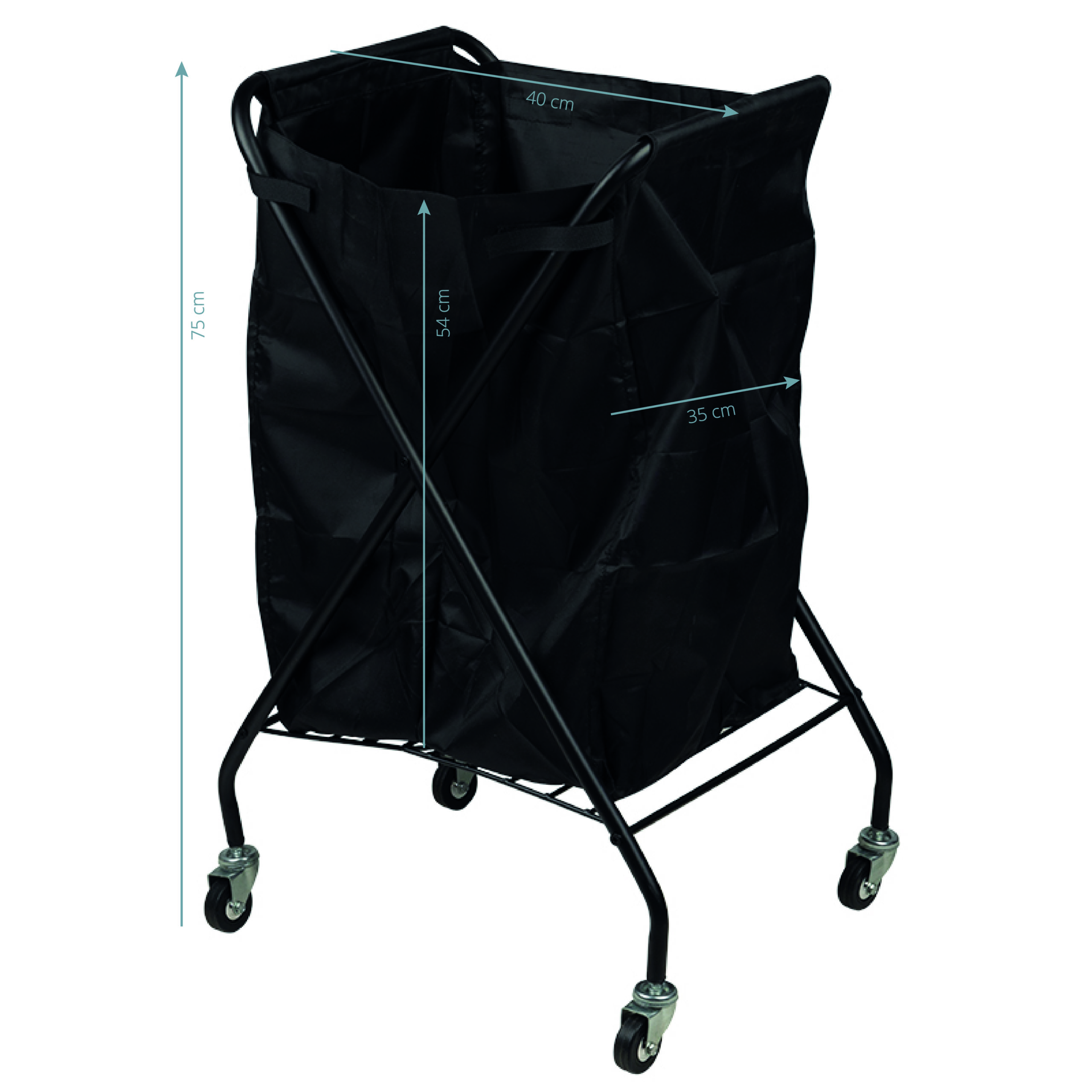 Mobiele kappers werkwagen voor vuile handdoeken. dankzij de wieltjes is de mand verrijdbaar en haal je vuile handdoeken makkelijk op uit verschillende kamers. de mand is gemaakt van een metalen frame met een katoenen inzet.