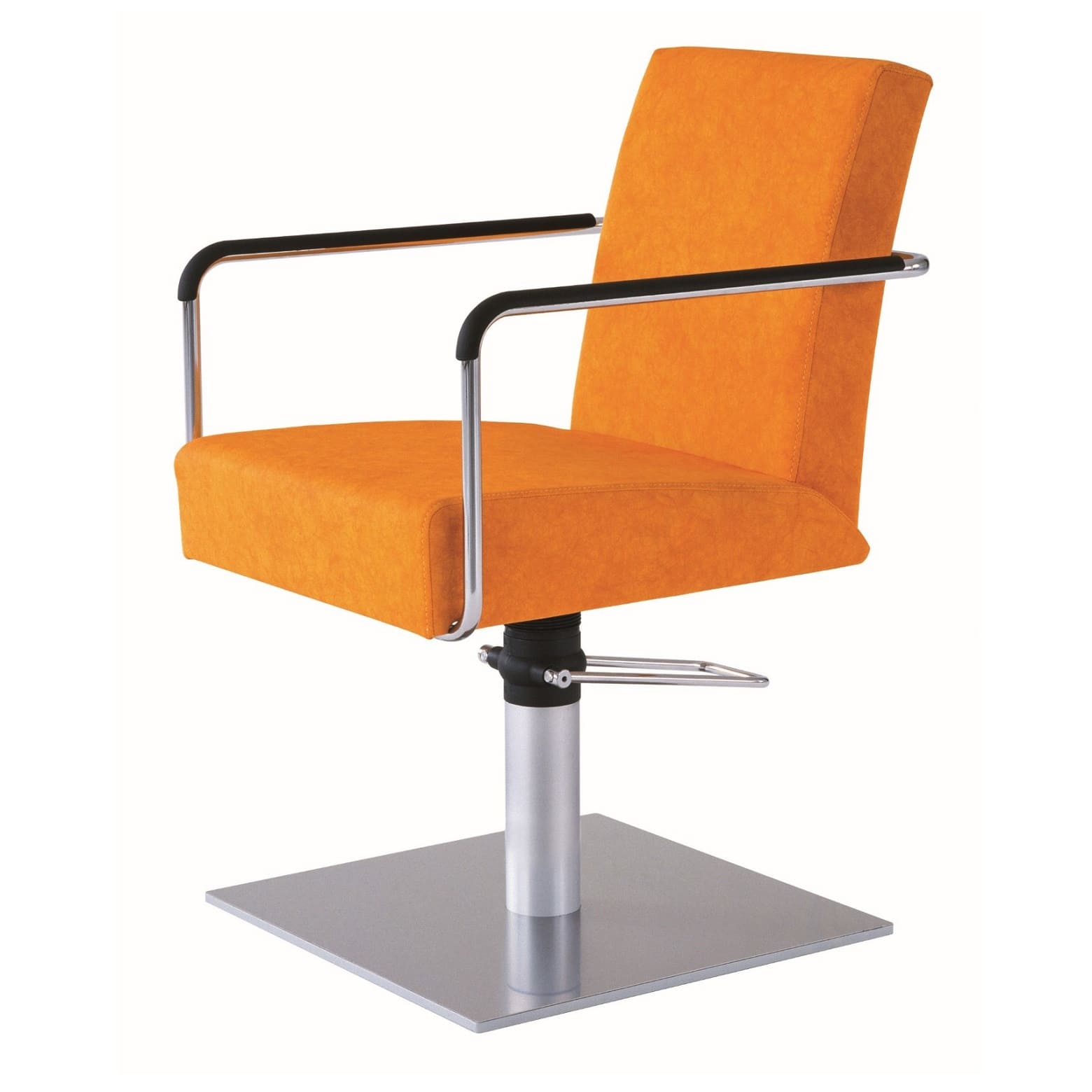 De Greiner 35 kappersstoel – chroom biedt een perfecte combinatie van stijl en functionaliteit met zijn hydraulische pomp en een zwarte ronde voet .
