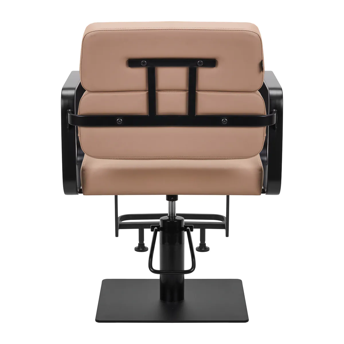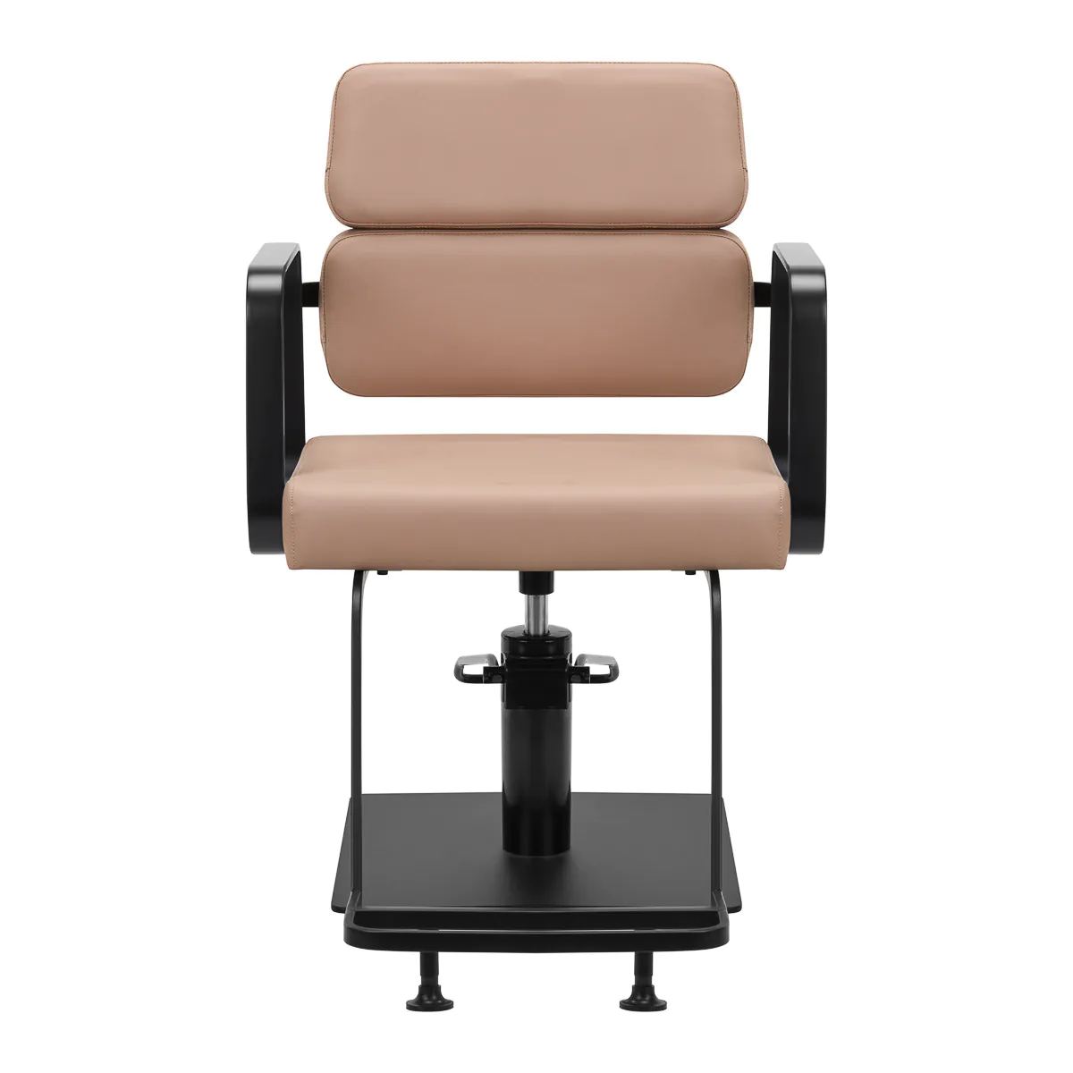 Het volledige rotatiemechanisme van de stoel maakt het werk van de kapper effectiever en comfortabel. Een stevige, platte, vierkante basis garandeert stabiliteit tijdens gebruik. Het mat afgewerkte, gladde oppervlak geeft het element een elegante uitstraling en maakt het gemakkelijk schoon te houden. Een comfortabele zitting met schuimvulling zorgt voor hoog gebruikscomfort, zelfs tijdens vele uren behandelingen. Geometrische, metalen armleuningen zorgen voor de juiste positionering van de schouders van de cliënt – dit betekent dat hij zijn hoofd niet in zijn schouders steekt of onderuitzakt – wat het veel gemakkelijker maakt om precieze behandelingen uit te voeren sterk>, inclusief kapsels. Een stijlvolle voetsteun speciaal voor dit model biedt stabiele ondersteuning voor de voeten van de gebruiker.
