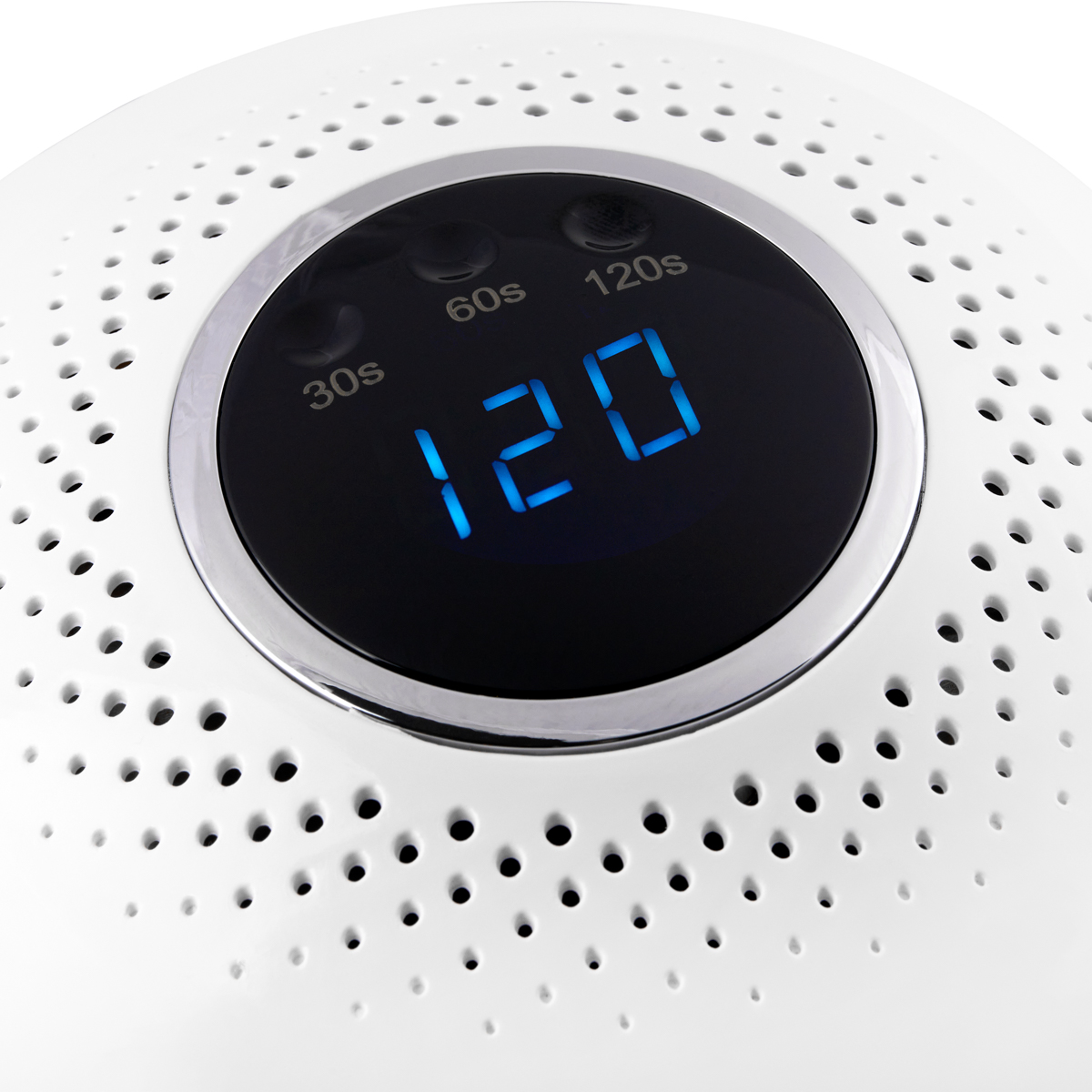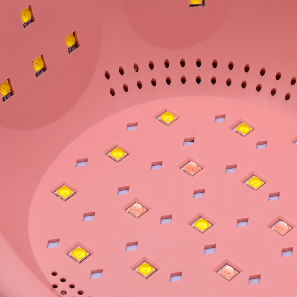 UV LED U1 84W-lamp De nieuwste generatie, professionele UV / LED-lamp die snel en gelijkmatig alle gels, hybride vernissen en andere lichte preparaten geneest dankzij het gebruik van technologie met dubbele LED. Zendt met licht dat het gezichtsvermogen niet vermoeit. De U1-lamp heeft een energiebesparende lichtbron met een hoog vermogen en een dubbele golflengte van 365 nm en 405 nm. Bovendien geven 40 LED’s die een totaal maximale vermogen van 84 W geven! De lamp heeft een ingebouwde bewegingssensor, een timer van 30, 60 en 120 seconden, en na het activeren van de sensor verlicht hij continu gedurende 120 seconden. 120 seconden “Low Heat Mode” is een modus waarin het lampvermogen geleidelijk elke 30 seconden toeneemt. Het vermindert het brandende gevoel tijdens de toepassing van bouwersgels. Groot elektronisch display vergemakkelijkt de tijdregeling. Werktijden: 30s, 60s, 120s Band van Licht: 365 Nm, 405 Nm en Lifetime: 50.000 Hours