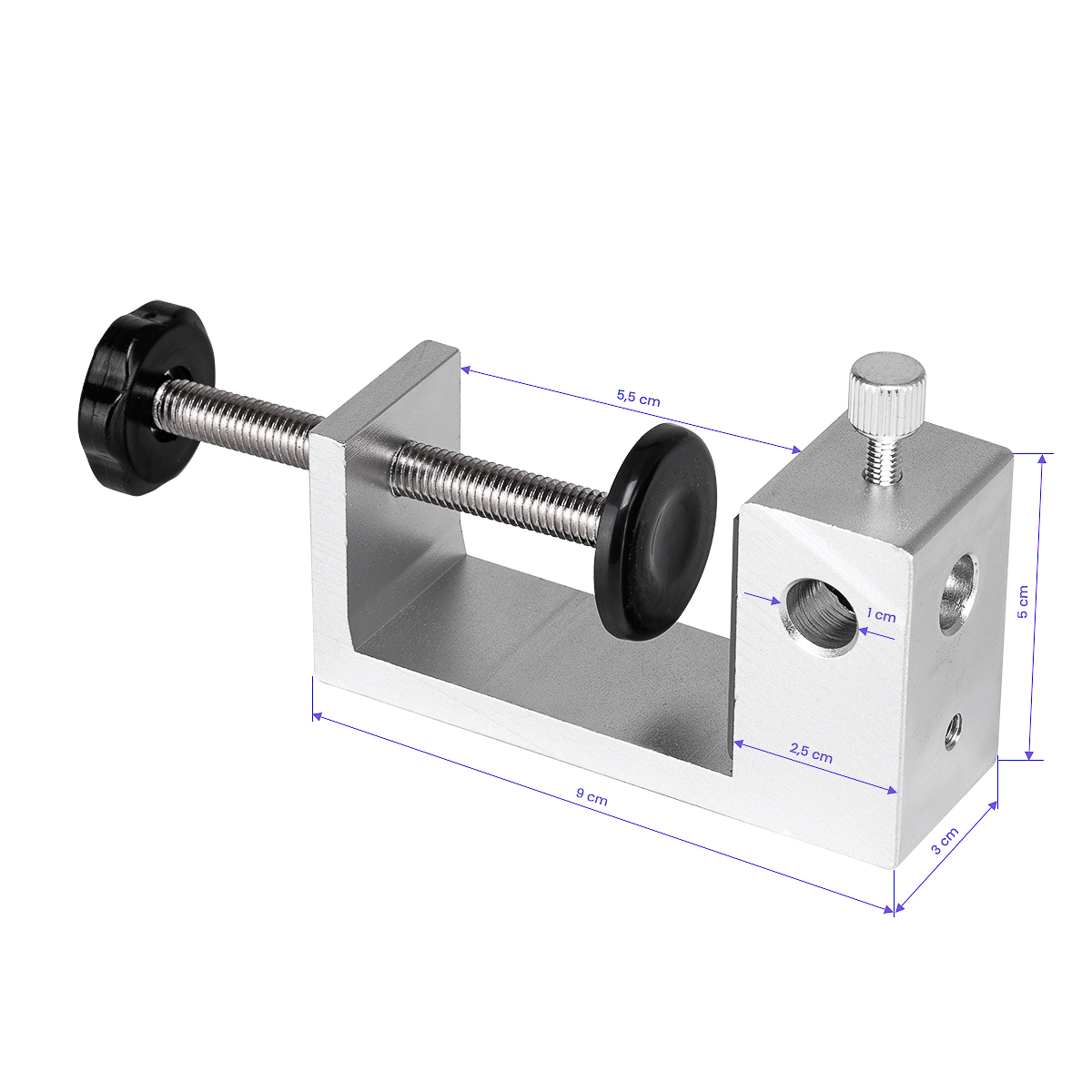 Met zijn eenvoudige aluminium vorm met een gepolijste zilverkleurige afwerking, maakt de lamp indruk met een futuristische look, die perfect in vrijwel elk interieur past. Dankzij de bankschroefachtige handgreep kan hij gemakkelijk en stabiel op een tafelblad worden gemonteerd, en het 135 cm hoge statief zorgt voor een passende functionaliteit. Het gladde oppervlak van de lamp maakt hem uitzonderlijk gemakkelijk schoon te houden, waardoor problemen met moeilijk bereikbare onderdelen worden voorkomen.
