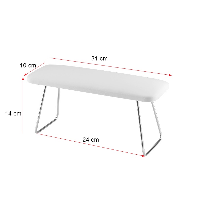 Professionele manicure -ondersteuning # 1 is een klassieke palmsteun. De bekleding is gemaakt van eco-leer en de benen zijn gemaakt van verchroomd staal. De juiste hoogte van de ondersteuning zorgt voor een comfortabele positie voor zowel de klant als de stylist. De stylist is niet slungelt en houdt zichzelf recht vast, dankzij welke pijn in de wervelkolom zal worden verlicht.
