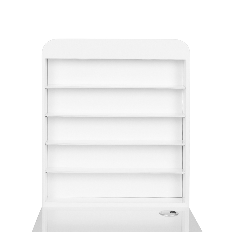 manicuretafel en nageltafel met afzuiging – een zeer functioneel meubelstuk voor schoonheidssalons dat drie functies combineert: een manicuretafel en nageltafel, een stofafzuiging en een rek voor het tentoonstellen van lak, enz. een meubelstuk dat perfect past bij de inrichting van moderne kamers. deze heeft een kast met ruime lades. het meubelstuk is speciaal zo ontworpen dat het het werk zoveel mogelijk vergemakkelijkt en het probleem van uitstekende kabels (van lampen, freesmachines, afzuigings, etc.) vermindert: