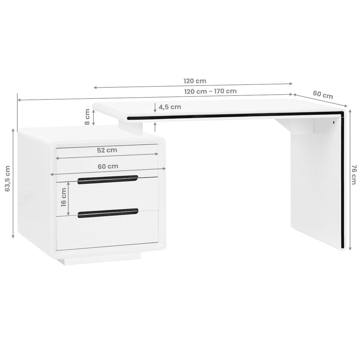 Functionaliteit en bruikbaarheid zijn de belangrijkste voordelen van het bureau 3304. Dit meubel is perfect voor een schoonheidssalon, maar niet alleen … het past ook perfect in een kantoor of thuiskantoor. Het is een ideale plek om te werken, met het ontwerp kunt u de positie goed en duidelijk organiseren en alle benodigde accessoires binnen handbereik plaatsen. Een ander voordeel is het feit dat, afhankelijk van de behoeften, het bureau in een rechte lijn kan worden gebruikt als rechts / links en een tafel binnen / buiten kan worden ontmoet, waardoor de grootte van het bureau tegelijkertijd wordt gewijzigd. Het bureau is gemaakt van hoog Gloss gelakt MDF -bord. De humorkleur en het glanzende oppervlak geven het een elegante look. Het bureau onderscheidt zich door elementen zoals:- Massief en substantieel tafelblad dat de vrijheid van werk garandeert,- een uitgerust kabinet ontmoette 3 laden,- modieus en modern ontwerp.
