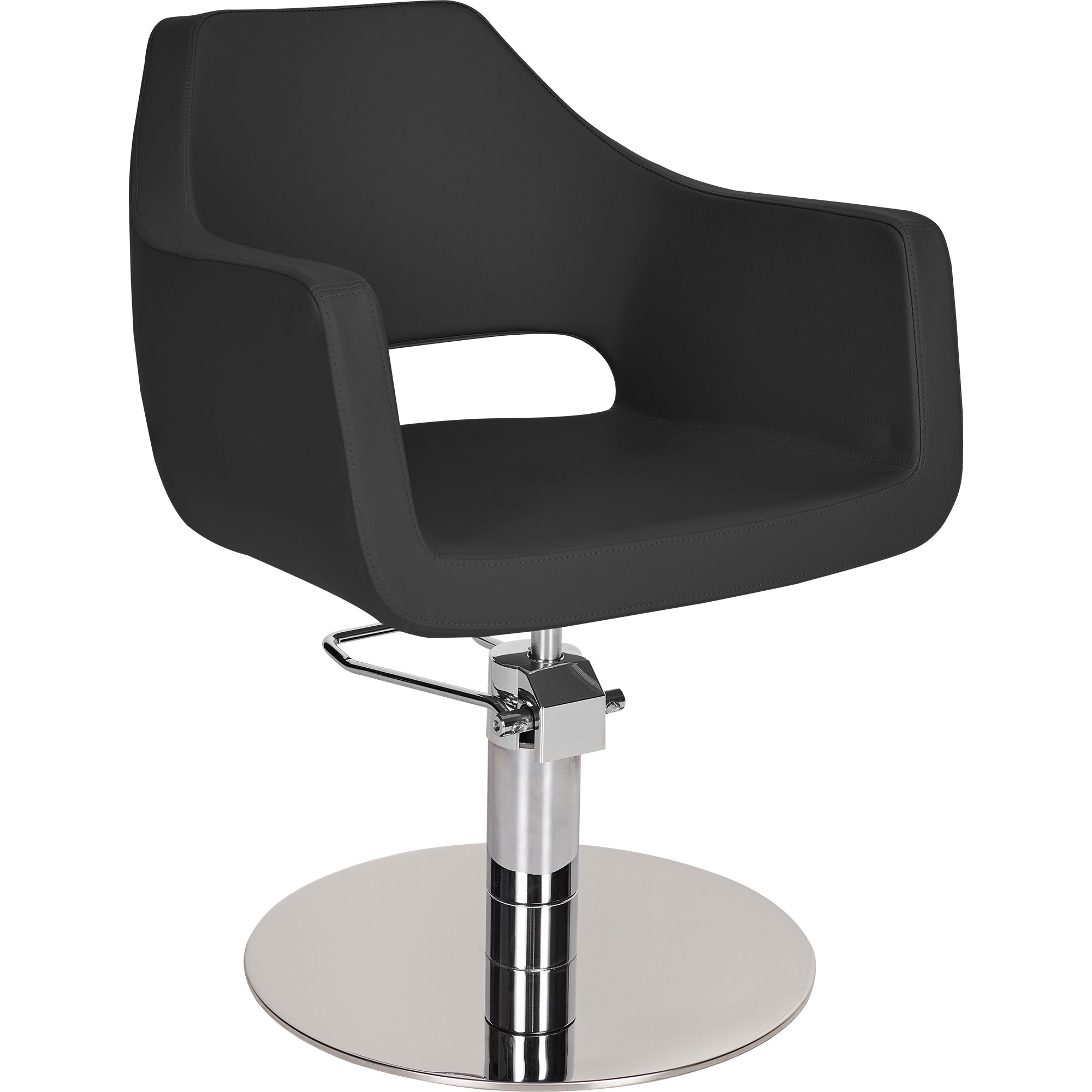 De rugleuning en armleuningen van de kappersstoel garanderen een hoog comfort en voorkomen dat uw cliënt moe wordt en geven de operator er gemakkelijk toegang toe.