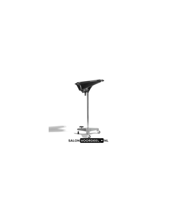 Mobiele Wasbak Alteq, met pedaal, Wasbak Alteq zwart op statief. Deze wasbakken zijn zeer degelijk en stabiel, door de zware gietijzeren voet. Zeer geschikt voor intensief gebruik, bij bijvoorbeeld thuiskappers en verzorgingshuizen e.d. In hoogte verstelbaar dmv voetpedaal, Verrijdbaar op twee rubberen wielen, met 1 stop. inc. afvoerslang van 1.75meter. Kleur zwart of wit
