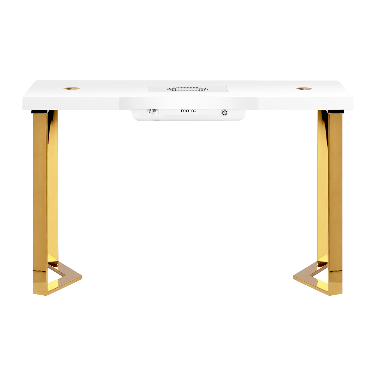 De Momo 05 cosmeticatafel is een unieke combinatie van eenvoud en stijl, ontworpen voor veeleisende gebruikers. Het minimalistische design met gouden elementen geeft het een elegant karakter. Het gladde, hoogglanzende blad garandeert comfort tijdens het uitvoeren van dagelijkse taken in de schoonheidssalon.