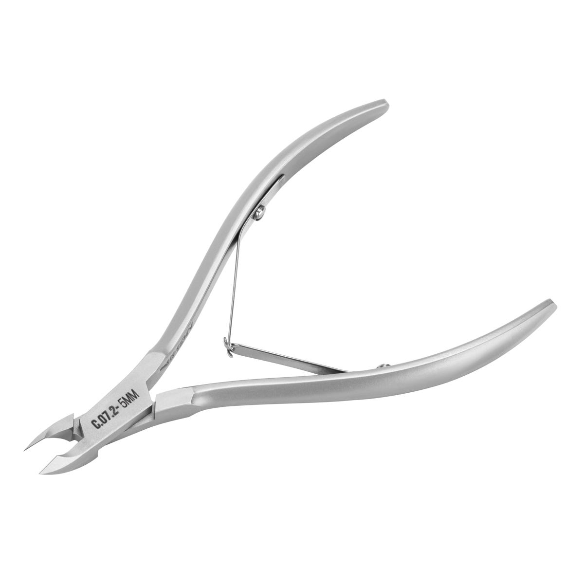 De nagelknippers zijn ontworpen voor eenvoudig en veilig verwijderen van nagelriemen. Hun ergonomische vorm zorgt voor een comfortabele grip, terwijl de extreem scherpe mesjes nauwkeurig knippen mogelijk maken zonder risico op huidbeschadiging. Ze zijn gemaakt van hoogwaardig roestvrij staal, corrosiebestendig en gemakkelijk te desinfecteren. De dubbelzijdige hoef is een veelzijdig hulpmiddel waarmee u nagelriemen zowel zachtjes kunt terugduwen als effectief kunt verwijderen. Eén punt is een afgeronde duwer, ideaal voor het vormen en terugduwen van nagelriemen zonder irritatie. Aan de andere kant bevindt zich de punt in de vorm van een afgeschuinde driehoekige snijder, waarmee u hardnekkige, verhoornde delen van de opperhuid nauwkeurig kunt verwijderen.