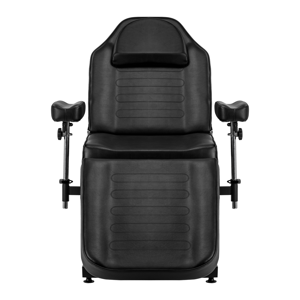 De behandelstoel is uitgerust met een hydraulische actuator die een soepele hoogteverstelling van 60 tot 73 cm mogelijk maakt. Zowel de rugleuning als de voetensteun hebben een handmatige hoekverstelling, waardoor een positie kan worden aangepast aan het type behandeling dat wordt uitgevoerd.De beweegbare, verzonken armleuningen zijn eenvoudig te verwijderen en te verstellen. Ze maken hoek-, hoogte- en kantelverstelling mogelijk, wat zorgt voor comfortabele, stabiele ondersteuning en nog meer werkvrijheid voor de tatoeëerder. Al deze functies verhogen het comfort voor de klant en maken nauwkeurig tatoeëren mogelijk.