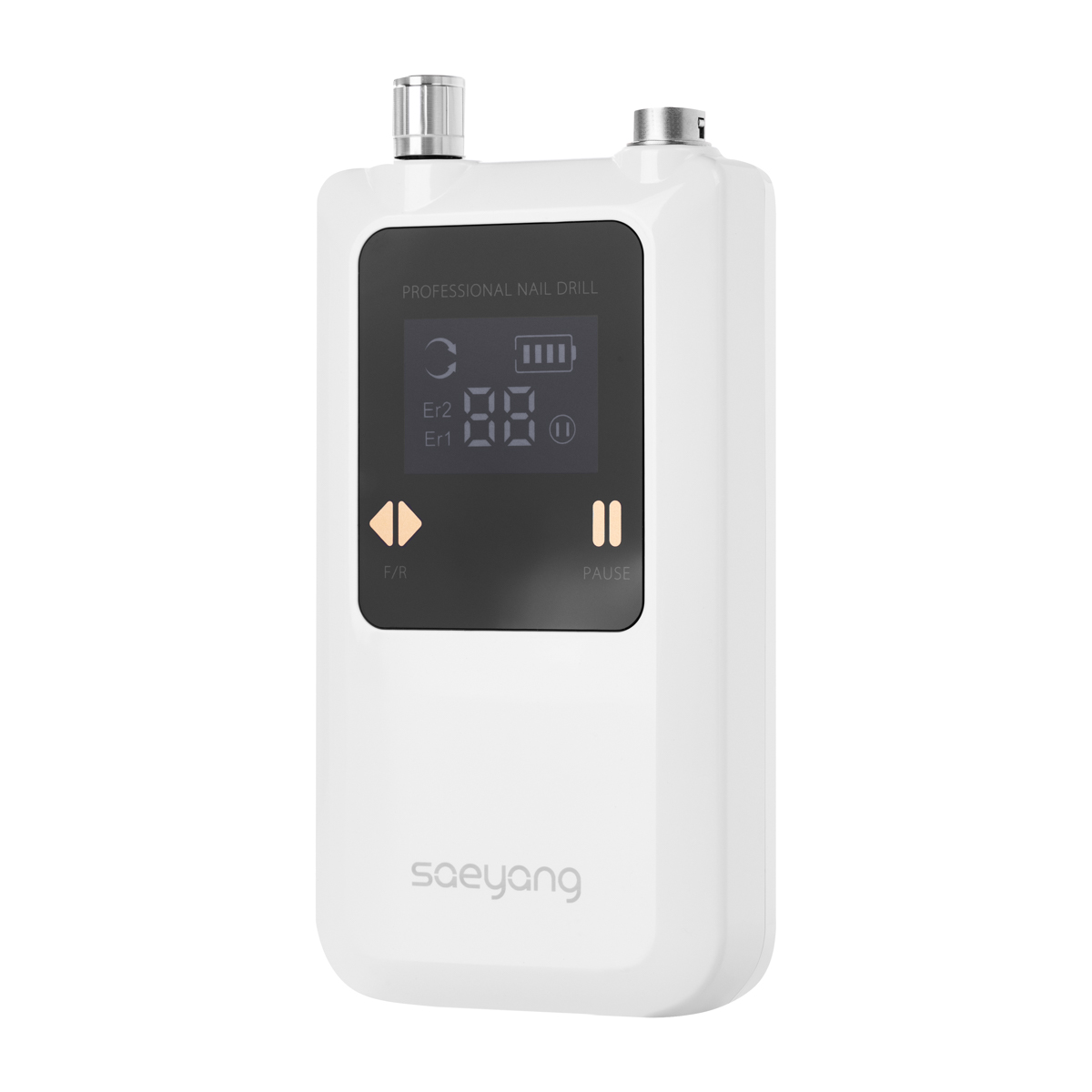 De compacte Saeyang Marathon K30S draadloze nagelfrees met borstelloze motor is een praktische oplossing voor stylisten die mobiele diensten aanbieden.