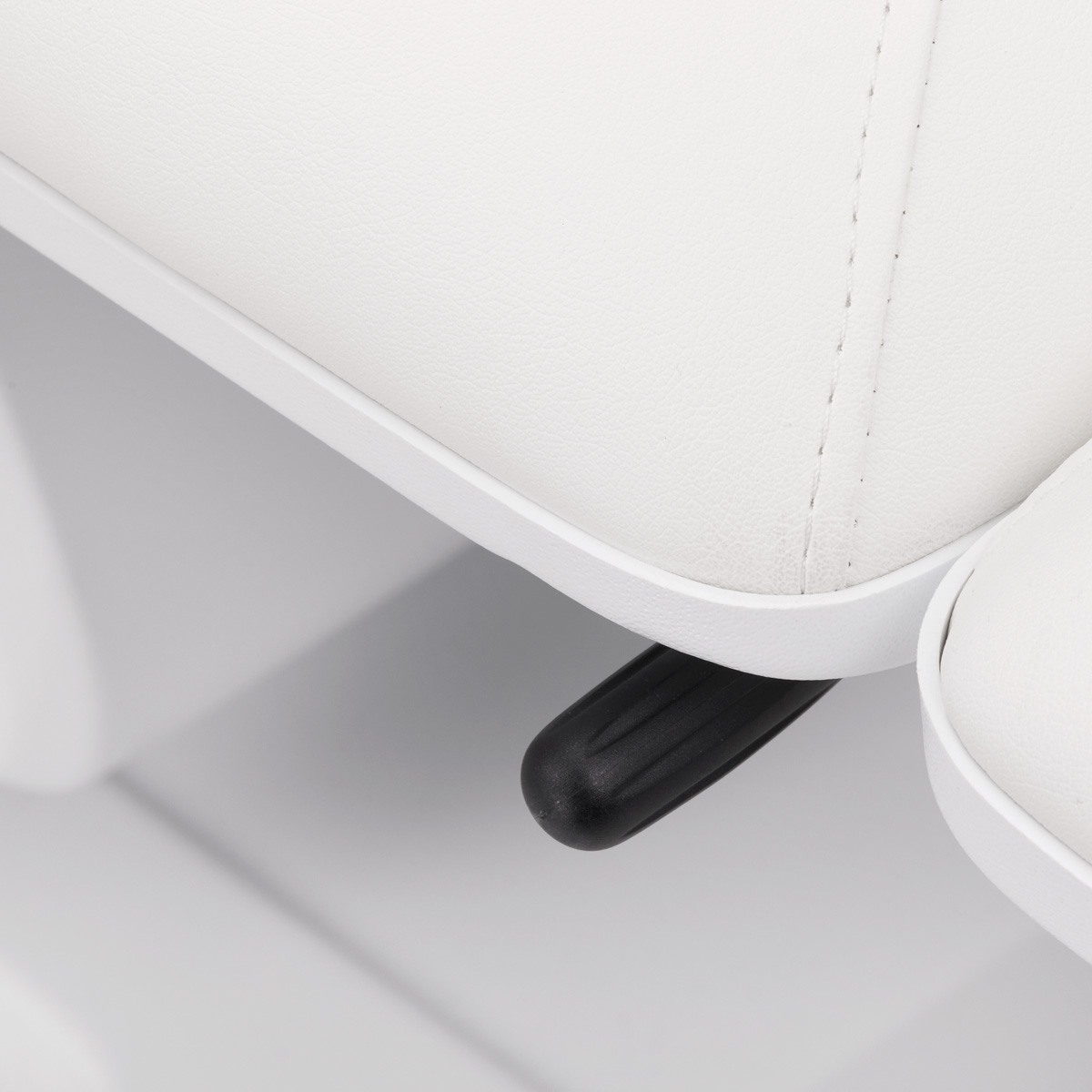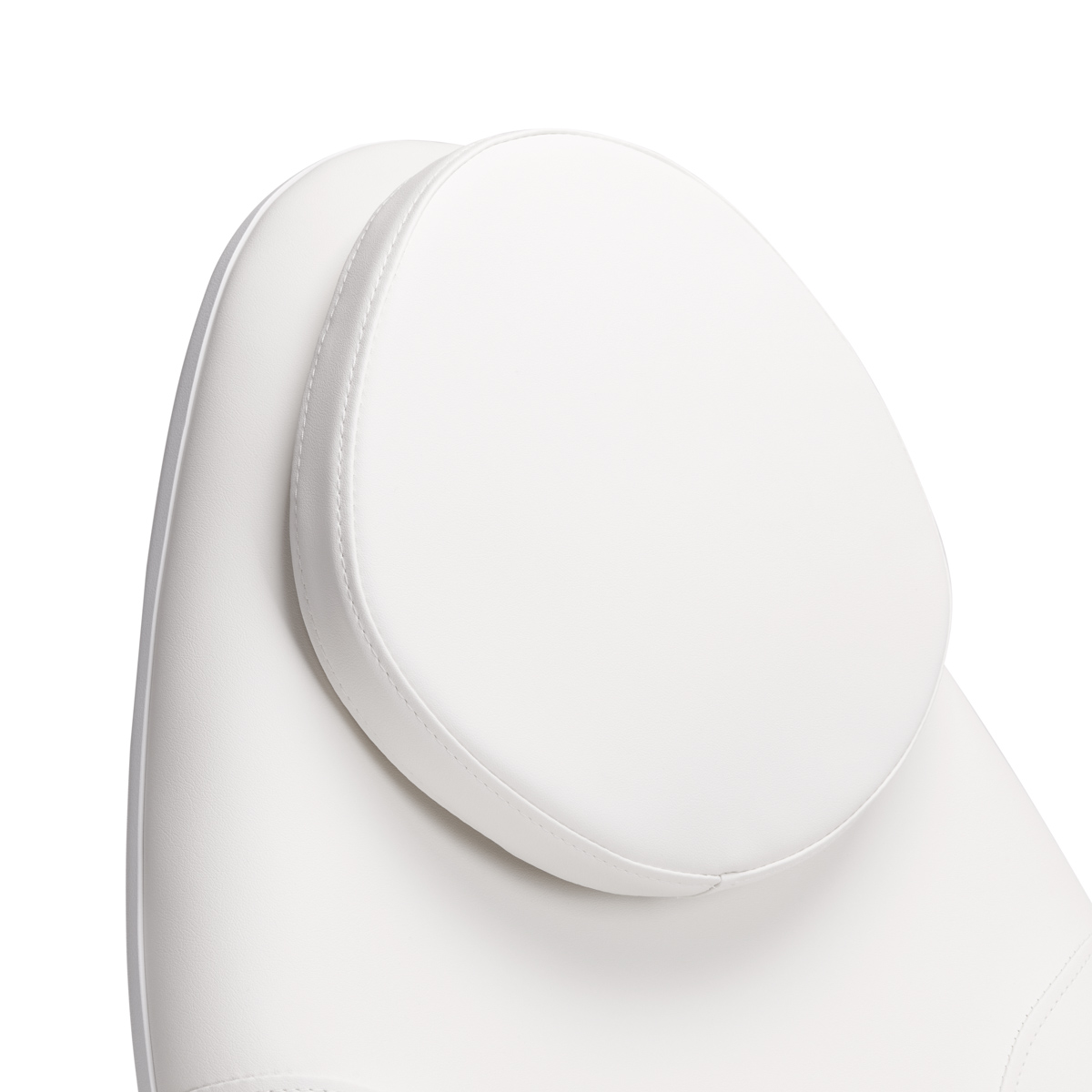 Deze cosmetische behandelstoel is gevuld met schuim en bedekt met een aangenaam aanvoelend mat kunstleer in witte tinten. Dankzij het gebruik van dergelijk materiaal is de apparatuur vochtbestendig en gemakkelijk schoon te maken en garandeert de solide constructie duurzaamheid. Goed gemaakte zomen geven het een stijlvolle uitstraling. Dankzij het minimalistische, eenvoudige ontwerp en klassieke kleuren past hij in elk interieur.
