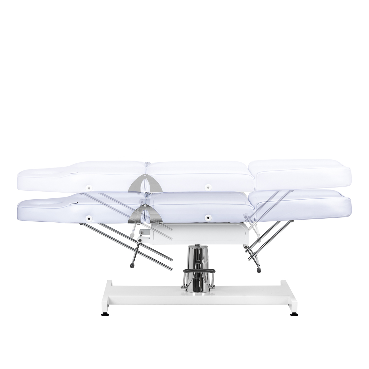 Met speciale hendels is het mogelijk om de hoek van de voetensteun en rugleuning traploos te verstellen. Dit maakt een optimale aanpassing van de instellingen aan individuele behoeften mogelijk, voor een correcte en comfortabele uitvoering van de behandelingen en optimaal gebruikscomfort. De stoel kan worden uitgeklapt tot een slaapbank, wat de functionaliteit aanzienlijk verhoogt.