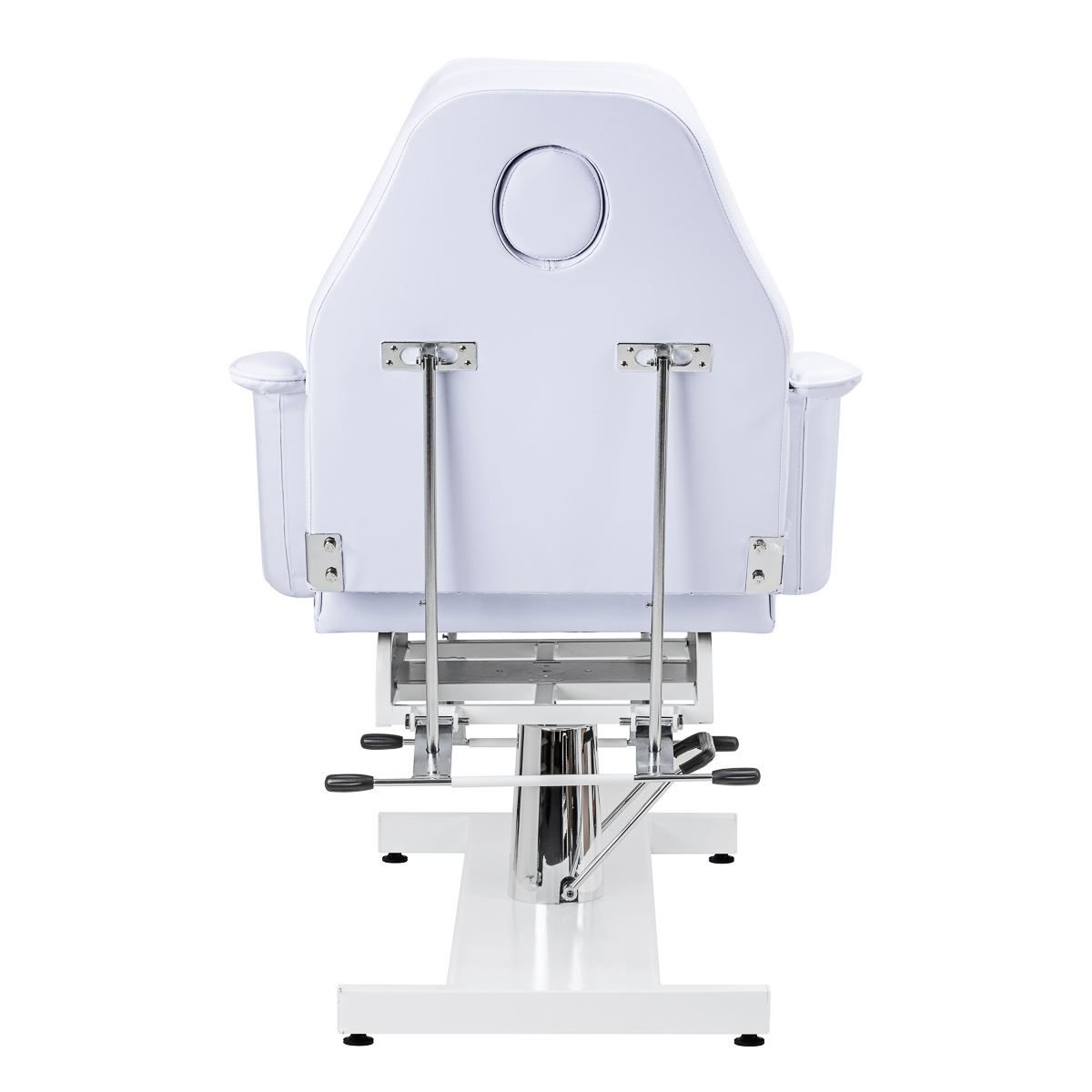 De hoogte van de zitting is handsfree verstelbaar van 62 tot 75 cm met behulp van een hydraulische pomp. Dit maakt het apparaat comfortabel te gebruiken voor mensen van verschillende lengtes en kan worden aangepast aan de individuele behoeften van zowel de cliënt als de persoon die de behandeling uitvoert. Het gebruikte mechanisme is zeer duurzaam en betrouwbaar. Dankzij het gat in de hoofdsteun, verborgen onder een kussen met een goede pasvorm, is de stoel ook perfect voor rugbehandelingen, zoals massages of tatoeages.