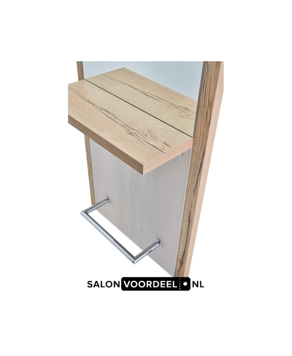 Prachtige spiegel met veel opties. Verkrijgbaar in 16 kleuren prefinished board. Verchroomde voetsteun. Melkplexiglas onder de plank. LED-achtergrondverlichting als een optie.