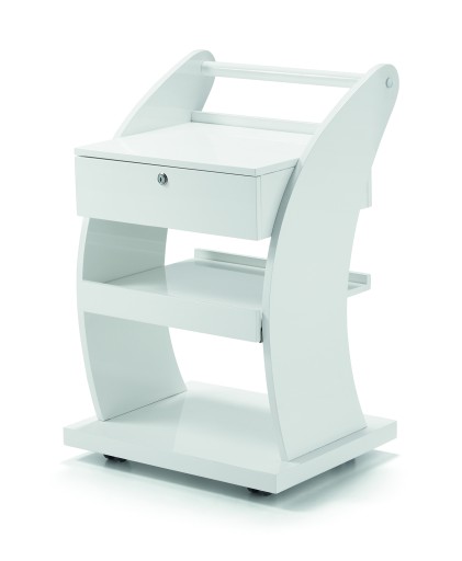 De bijzettabel X is duurzaam en functioneel. Het harde zware oppervlak met de witte melamine -coating kan gemakkelijk worden gereinigd. Er is een afsluitbare lade met een voldoende opslagruimte onder de bovenste plank. De onderstaande plank kan worden verwijderd. De bijzettafel is gerolderbaar.