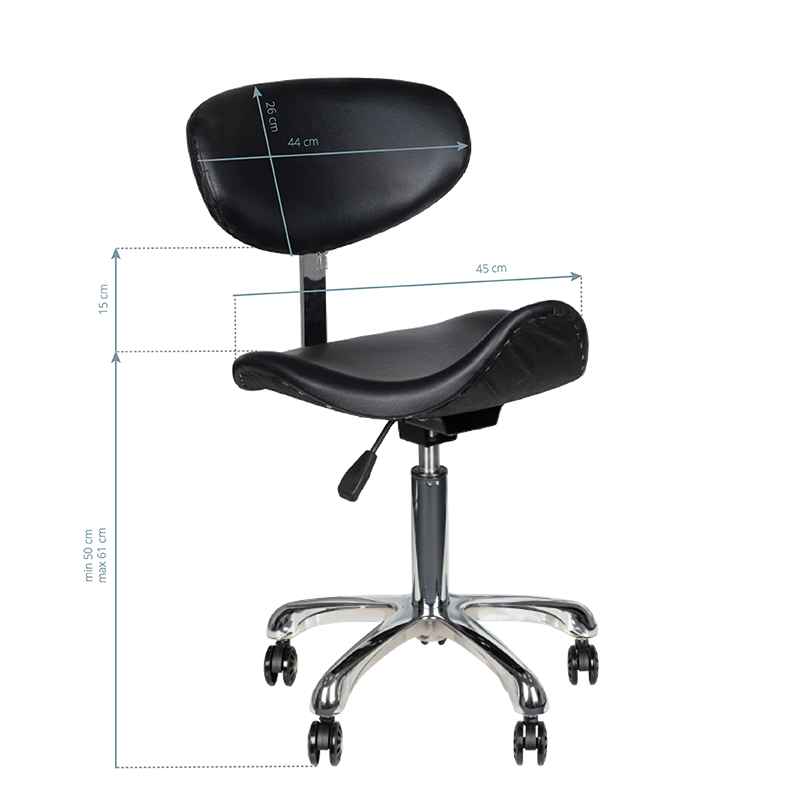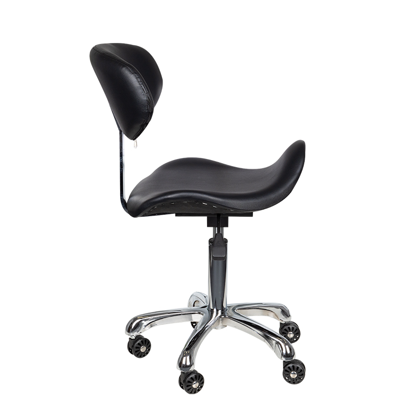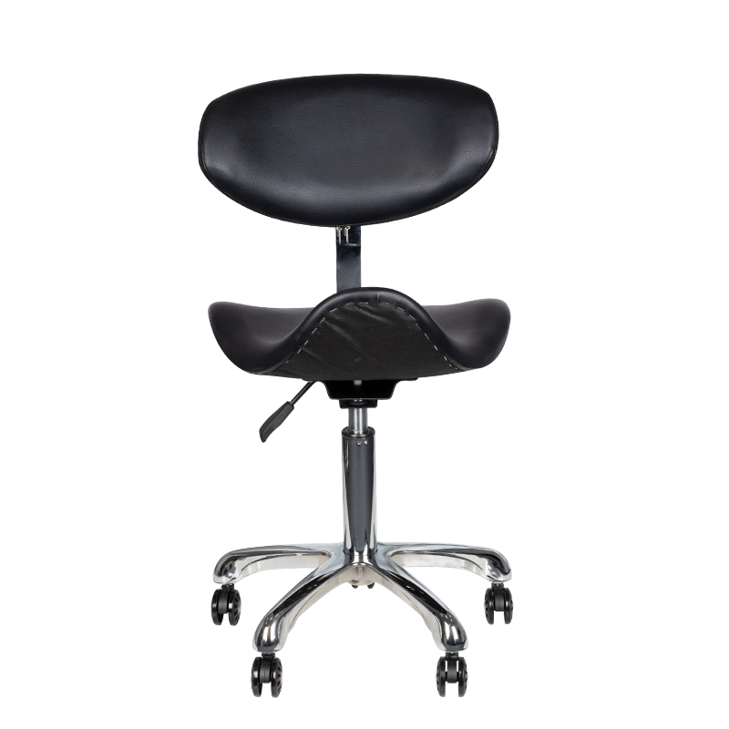 Comfortabele, exclusieve, stabiele Tabouret met een rugleuning en een geprofileerde zitting, op een vijfsterren, zeer stabiel onderstel.