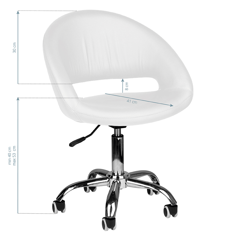 Moderne witte Tabouret. zeer comfortabele stoel met een moderne uitstraling. hoogwaardig eco-leer garandeert een eenvoudiger onderhoud van het meubel. de stoel is op en neer verstelbaar. rubberen wielen.