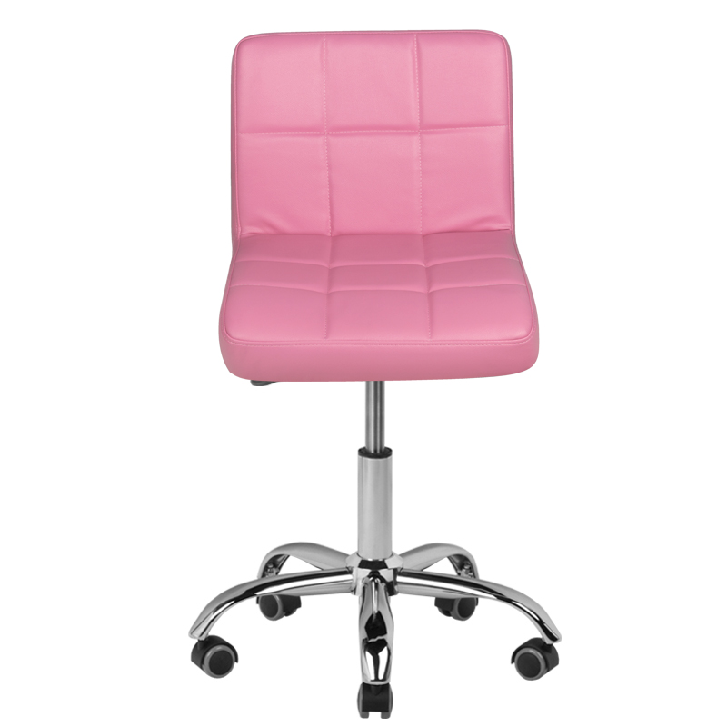 Moderne roze Tabouret. een zeer comfortabele stoel met een moderne uitstraling en mooie stiksels. hoogwaardig eco-leer garandeert een eenvoudiger onderhoud van het meubel. de stoel is op en neer verstelbaar. rubberen wielen. technische gegevens: afmetingen zitting 37x45cm hoogte rugleuning 30cm zithoogte min.48cm max . 61cm verpakking afmetingen 60x38x54