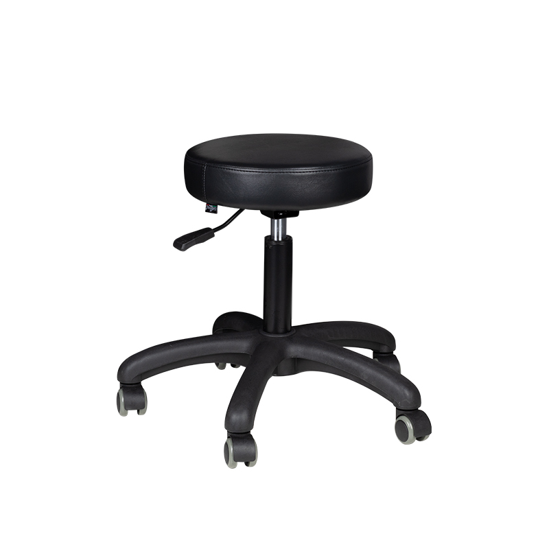 comfortabele Cosmetische tabouret kruk, stabiel op een vijfsterrenbasis, met rubberen wielen. noodzakelijk meubelstuk in een schoonheidssalon.