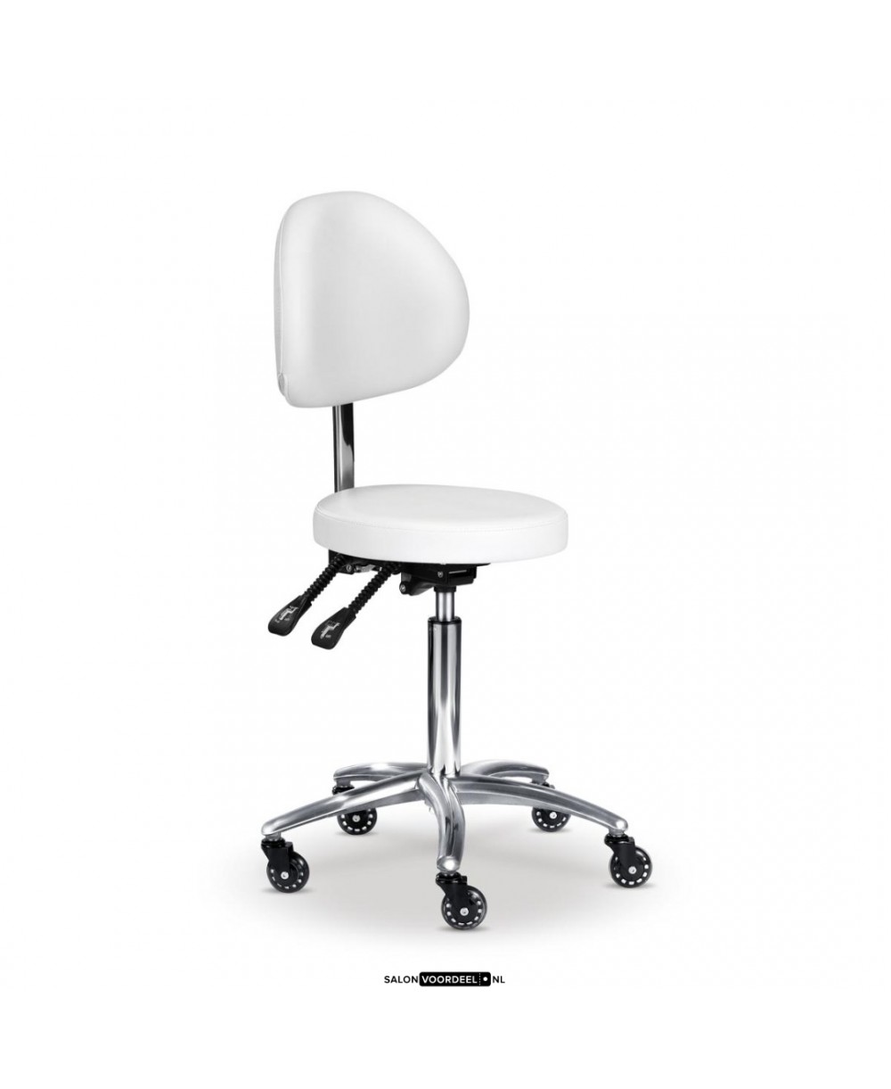 De kruk is uitgerust met 3 gasveren om de hoogte, de helling van de rugleuning en de zitting aan te passen.