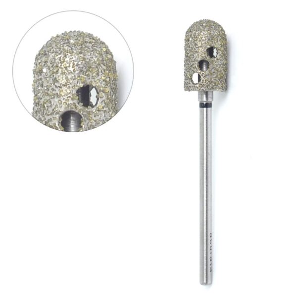 vacuüm diamantsnijder 8 mm diameter 13 mm hoge schachtlengte 3,5 cm zeer duurzame snijder Met negen gaten waardoor vrije stroom water of lucht mogelijk is. Idealiter geschikt voor pedicure -behandelingen, dankzij de sterke gradatie, maakt de huid van de voeten zeer snel glad. Max omzet 15.000