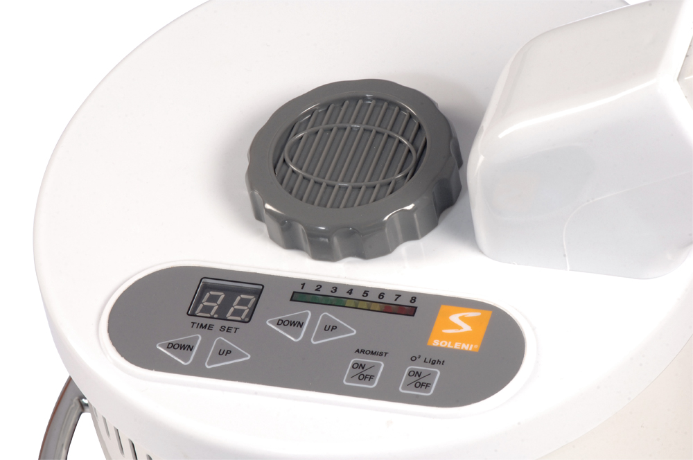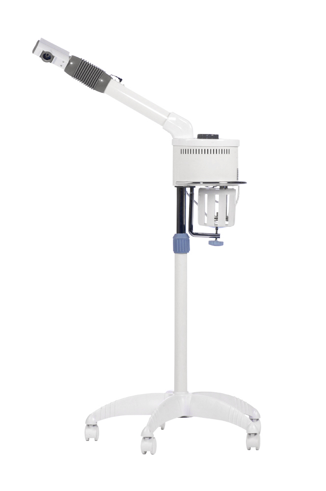 Met de “Aroma steamer V” koopt u een hoogwaardig apparaat uit de “Soleni Classic” lijn. Het is gemakkelijk verstelbaar om het gezicht te stomen. De poriën openen zich en de huid is optimaal voorbereid op een diepe reiniging. Schakelbare ozon zorgt voor een zachte natuurlijke desinfectie. Na ongeveer 5 minuten heeft het te vullen gedestilleerd water de temperatuur die nodig is om de stoom te genereren. De stoomsterkte is te regelen met een drukknopschakelaar. Met de ingebouwde timer stel je de gewenste stoomtijd in. Een vilten ring op de stoomarm kan worden gedept met aromatische olie. Ook is er een zeef en pan voor het bewaren van kruiden. Twee verschillende stoommethoden bieden een zeer ontspannende ervaring voor uw klanten.