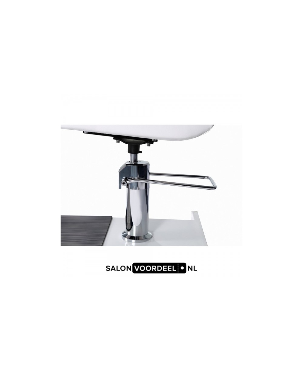 De stoel heeft een voetenbad en een beensteun. De beensteun is draaibaar. De stoel is hydraulisch in hoogte verstelbaar, draaibaar en afsluitbaar.