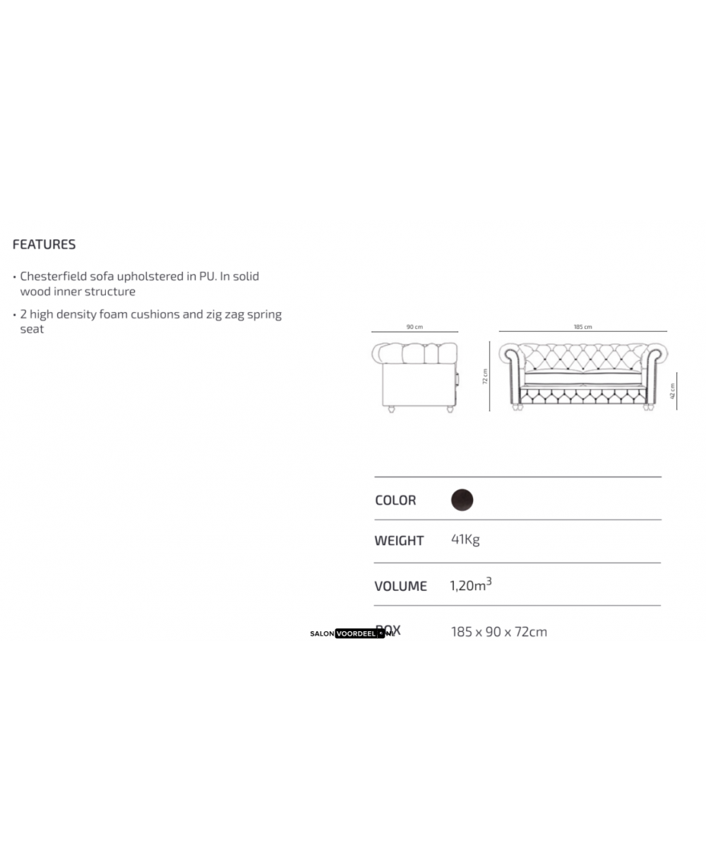 houten binnen structuur • 2 schuimkussens met hoge dichtheid en zigzagveer in de zitting.
