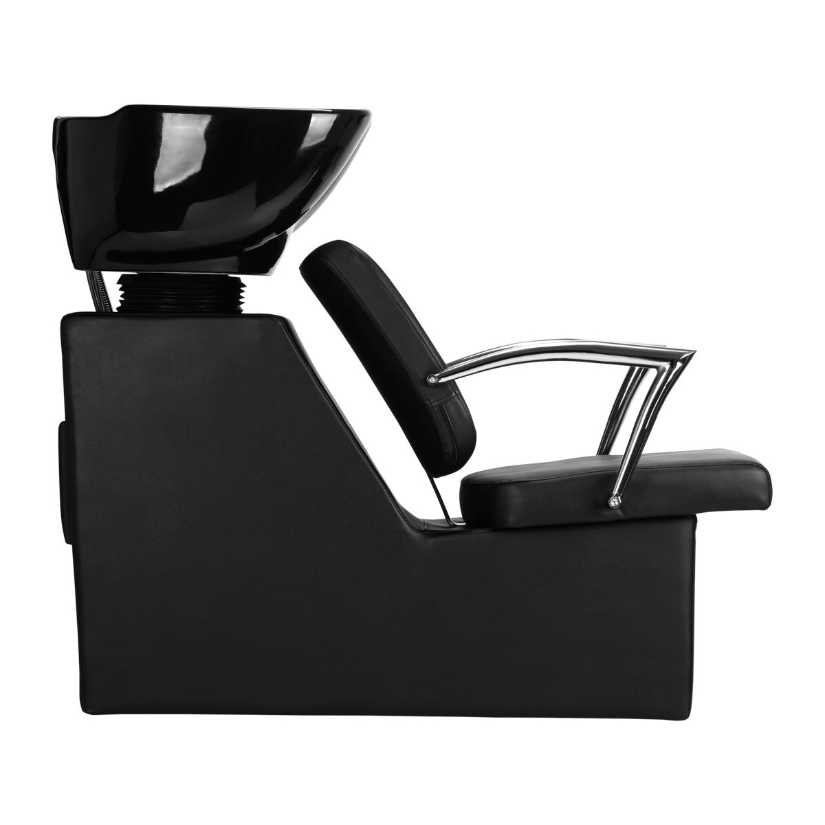 Professionele wasunit – stabiel, uiterst comfortabel, solide geconstrueerd. Het moderne design maakt het een mooie aanvulling op de inrichting van een moderne kapsalon. De zitting is gemaakt van hoogwaardig zwart eco-leer.