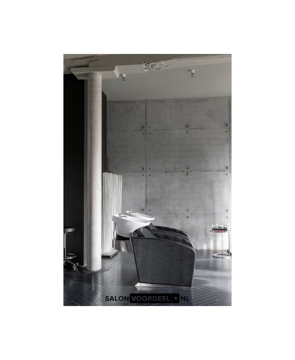 Wasunit Eleganta Met deze wasunit kunt u uw klanten verwennen met een moment van ultieme ontspanning. Niet alleen is het zorgvuldige design een uitdrukking van luxe en exclusiviteit, de wasunit blinkt ook uit in duurzaam comfort. Afmetingen: Zithoogte: 49 cm Breedte (incl. armleuningen): 68 cm Hoogte armleuningen (op hoogste punt): 69 cm Diepte: 77 cm Hoogte wasbak: 98 cm Wordt geleverd met maar liefst 5 jaar garantie.