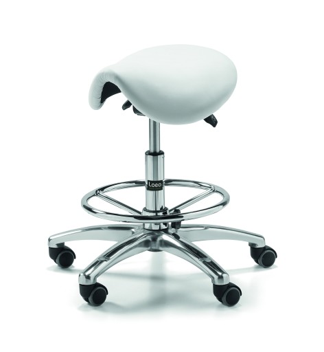 De helling van de zadelstoel kan worden aangepast voor de LOEA-werkkruk VIII-2. Het eerste kussen van de klasse maakt een hoge zitplaatsen mogelijk, zelfs met langere werkfasen. De zithoogte kan hydraulisch worden aangepast met behulp van een hendel. 5 Veiligheidsrollers zorgen voor een vaste standaard. Een voetring is optioneel beschikbaar. Opties 39 verschillende kleuren.