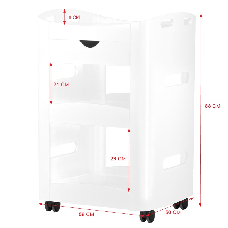 Esthetische en functionele humor waren gemaakt van gelakt hout. Ideinen voor spa -salons en schoonheidssalons. De tabel heeft een lade en vier wielen om te bewegen. Afmetingen van de lade: 33×33 cm