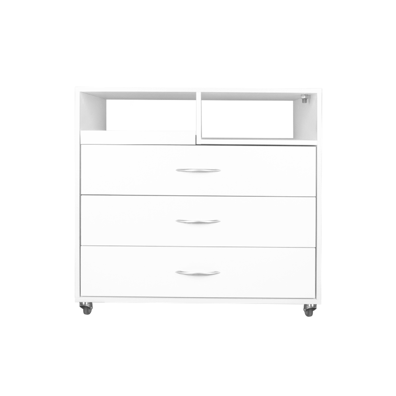 Een professionele podotherapie-eenheid, stevig geconstrueerde met laden, ontmoetten een speciale lade voor de UV-C-sterilisator en een plank voor een pedicuremotor. Het geheel wordt aangevuld met een lamphouder, een vergrootglasbuis en metaal-rubberwielen garanderen mobiliteit. De assistent is opgericht om het werk te vergemakkelijken van de persoon die de procedure uitvoert.